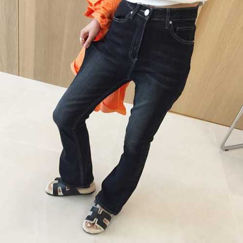블랙워싱 하이웨스트 사방스판 세미 부츠컷 청바지