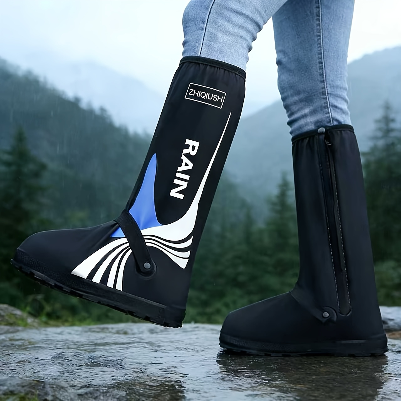 TEMU 레인 부츠 커버 - 방수, 미끄럼 방지, 두꺼운, 내구성 - 남성용 아웃도어 레인 부츠 커버, 튼튼한 밑창, 아우터 스타일 워터 슈즈, 타일 부츠 커버, 레인 부츠
