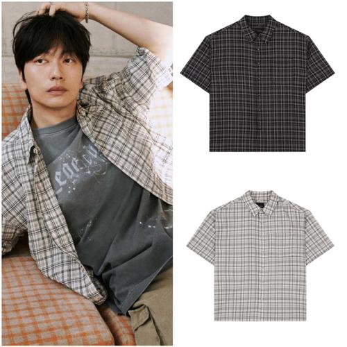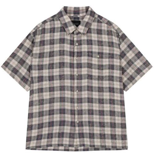 [버커루]공용 시어서커 블리치 워싱 체크 반팔 루즈 셔츠_US