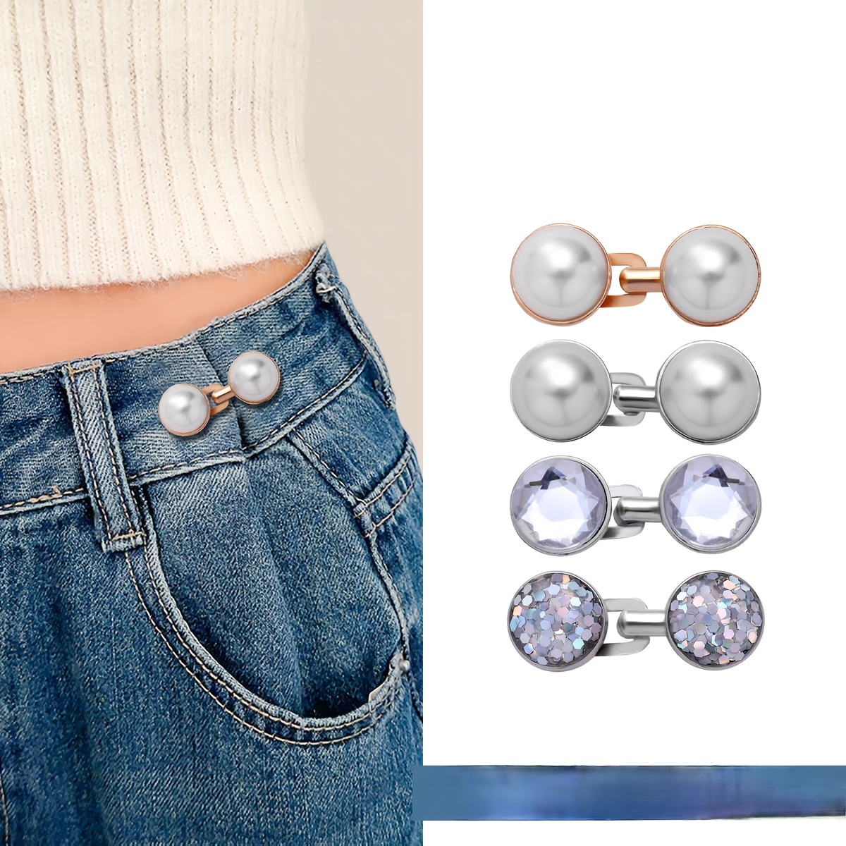 TEMU 여성용 바지 허리 조임기 4세트, 재사용 가능한 조절식 탈부착 허리 클립으로 즉시 매끄러운 디자인이 가능하며, 여성용 넉넉한 청바지, 드레스 및 스커트에 적합