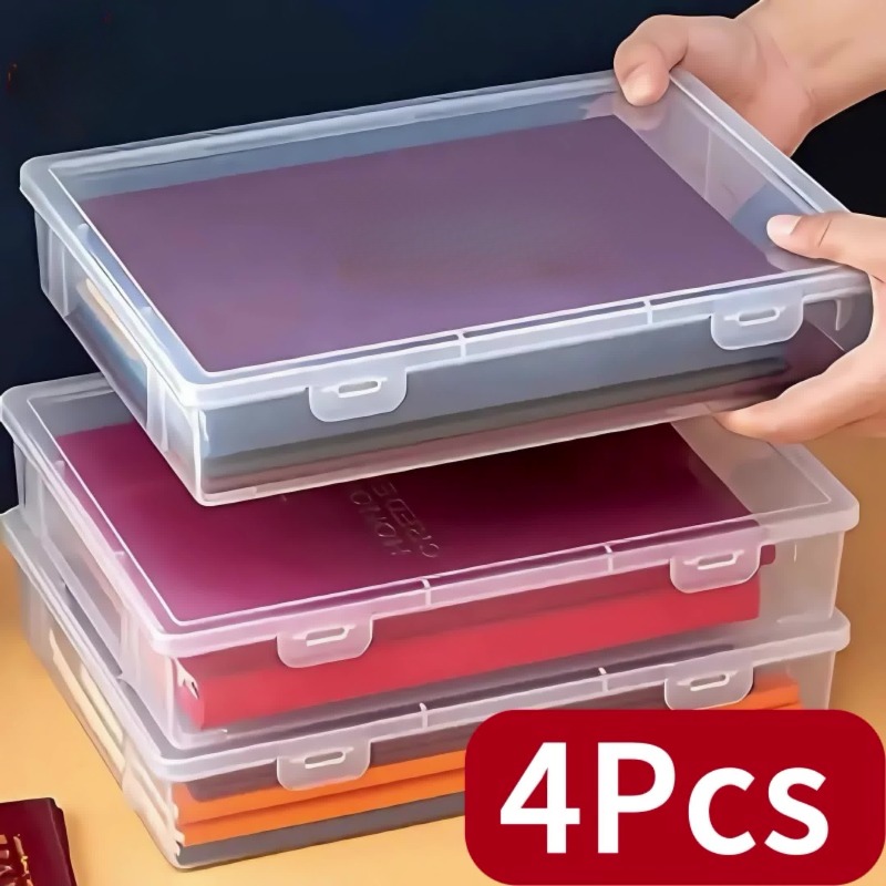 TEMU 학생용 파일 수납에 적합한 대용량 플라스틱 수납함 4개 세트, 높은 테두리와 직사각형 디자인의 책상 정리함, 사무용품 및 학용품용 플라스틱 선반, 신학기 선물