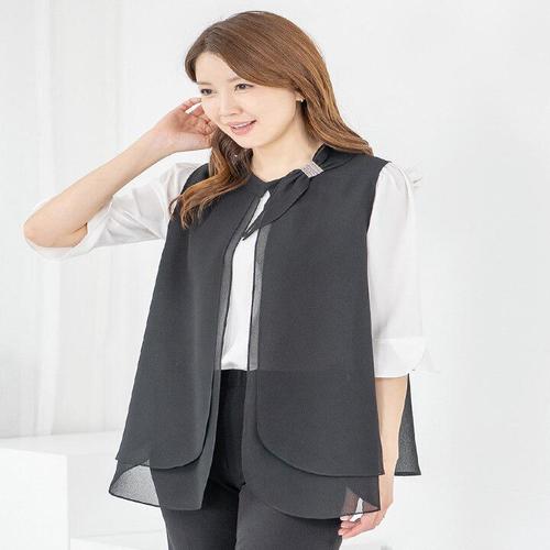 [드리다]엄마옷 여성 정장 조끼 여름 빅사이즈 리본 장식 이중 베스트 40-50대 중년 마담 하객 상견례 ..