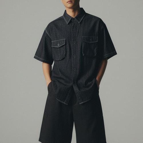 [화이트빌딩]남자 청남방 워싱 데님 반팔 오버핏 빅사이즈 셔츠