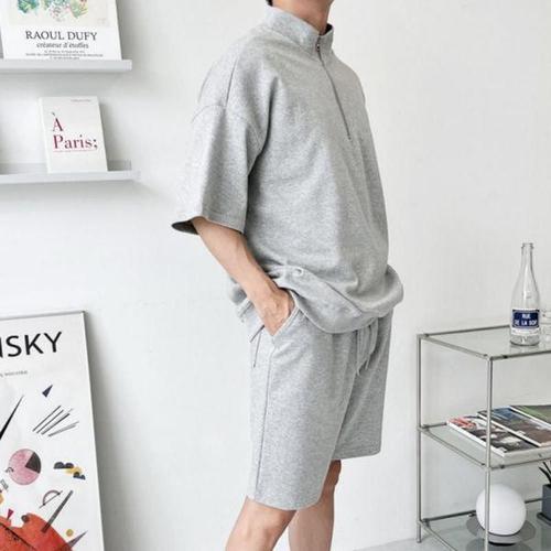 [에이치플러스몰]남성 데일리 빅사이즈 반집업 맨투맨 반팔 티셔츠