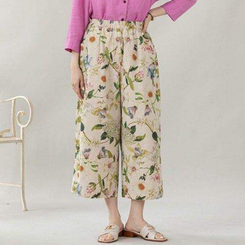 [디얼마미][디얼마미] 랜더 꽃 린넨 와이드 팬츠 /마담 미시 중년 여성 빅사이즈 40대 50대