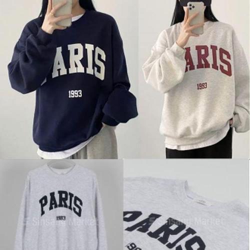 [셀러허브_여성트랜드패션]여성 파리 오버핏 봄 티셔츠 긴팔티 기본 맨투맨 빅사이즈 레터링