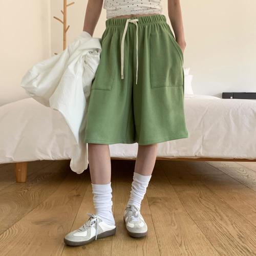 [다잇템]여자 넓은 빅사이즈 면원단 고무줄 쭈리 반바지
