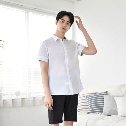 남성 반팔 빅사이즈 구김없는 스판 와이셔츠 고품질 셔츠 100-190kg 짧은 소매 셔츠 비즈니스 화이트 셔츠 블랙 셔츠