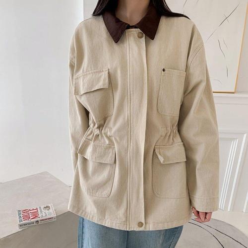볼사스 여성용 가을 면마 반버클 빅사이즈 아우터 재킷 린넨마 자켓 상의 ADOR3