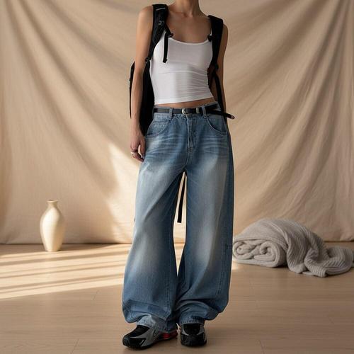 [다잇템]여자 진 넓은 하이웨스트 빅사이즈 청바지