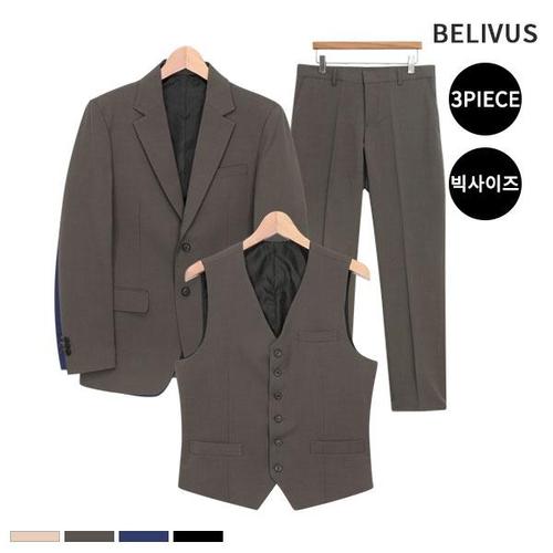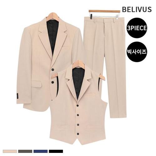 [빌리버스]남자 빅사이즈 스리피스 셋업 BIT053 남성 카라 베스트 슬랙스 자켓 수트 세트