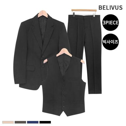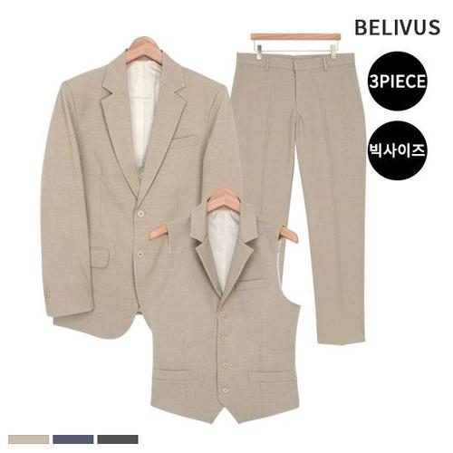 [빌리버스]남자 빅사이즈 스리피스 셋업 BIT052 남성 브이넥 베스트 슬랙스 자켓 수트 세트