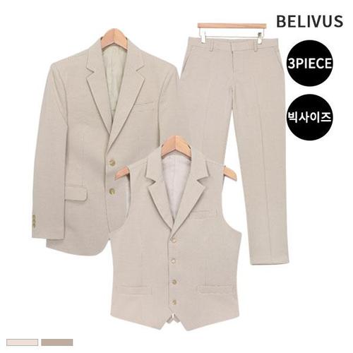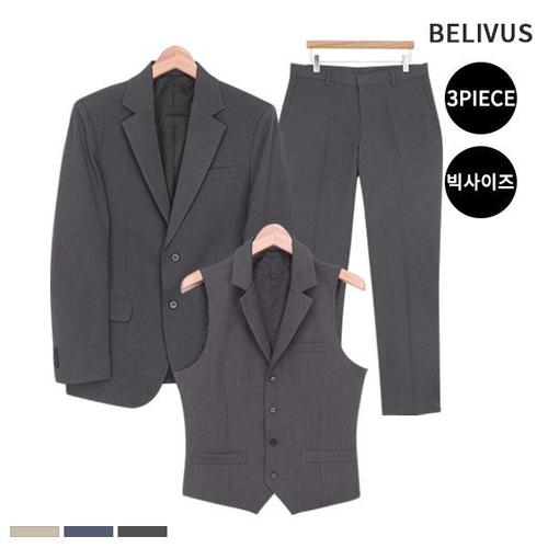 [빌리버스]남자 빅사이즈 스리피스 셋업 BIT050 남성 브이넥 베스트 슬랙스 자켓 수트 세트