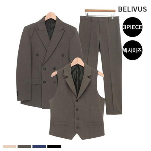 [빌리버스]남성 빅사이즈 스리피스 셋업 BIT052 남자 조끼 더블 자켓 슬랙스 수트 세트