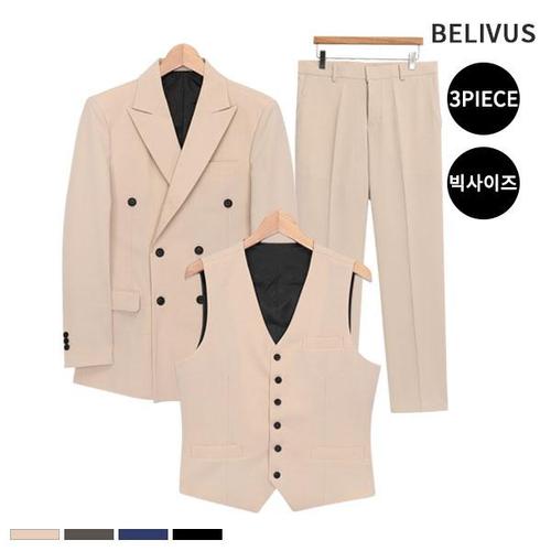 [빌리버스]남성 빅사이즈 스리피스 셋업 BIT053 남자 베스트 더블 자켓 슬랙스 수트 세트