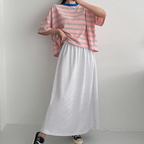 스커트 여자 빈티지 라인 봄여름 빅사이즈 이중 순색 밴딩 면사 OP1