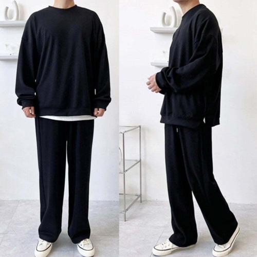 [셀럽하우스]빅사이즈 HZWQ6248 남자 골지 맨투맨 와이드 팬츠 세트