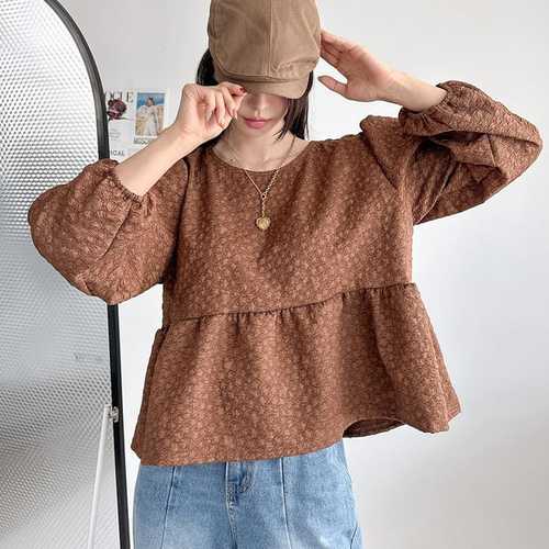 옷자락 / 여자 플라워 엠보 빅사이즈 프릴 퍼프 하객룩 블라우