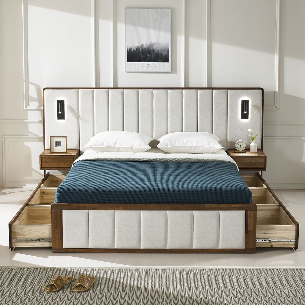 우아미가구 모노 우디 LED 원목 수납침대 Q FO5161