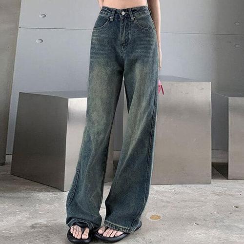Y2K 루즈 스트레이트 레그 진 여성 바지 배기 와이드 핏 캐주얼 하이웨이스트 레트로 워시드 빈티지 스타일 여성용 청바지