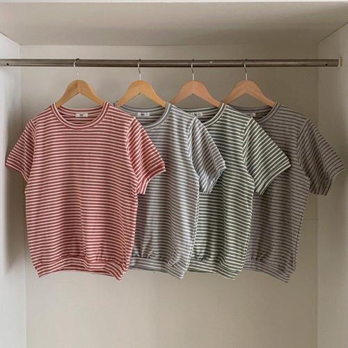 디멜디 여성용 스트라이프 슬림핏 여름 데일리 기본 반팔티셔츠