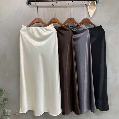 [신상오픈런]여성 새틴 A라인 롱 스커트 체형 보정 플레어 디자인