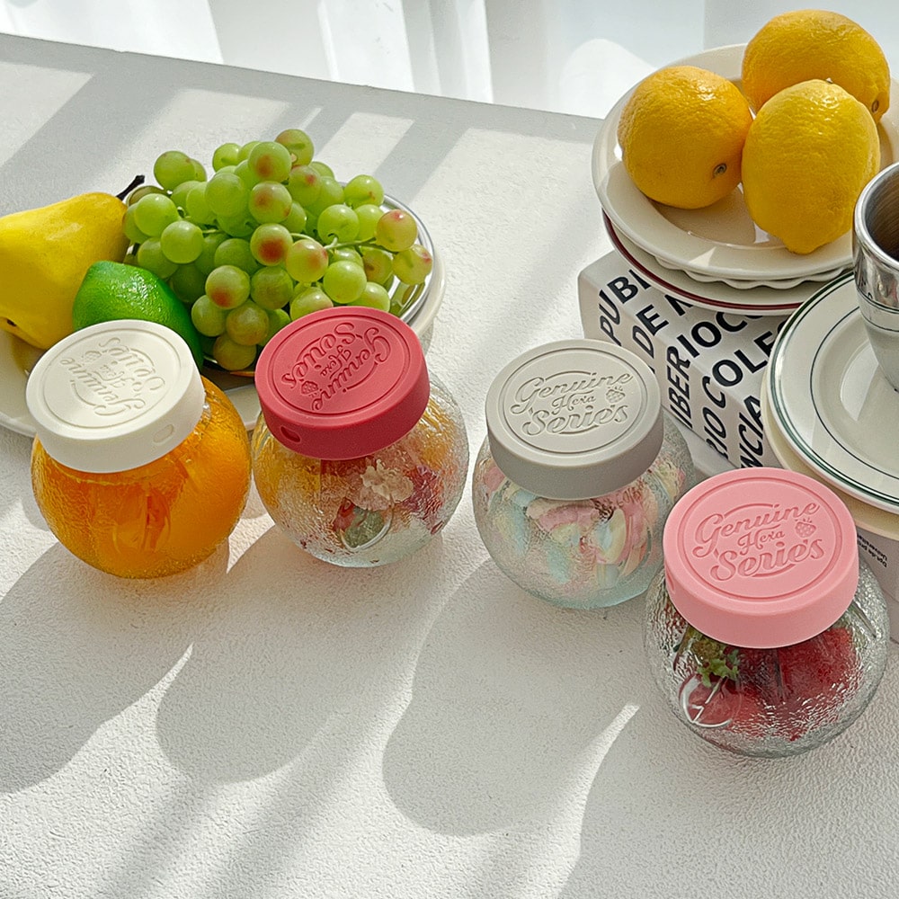 헥사 제뉴엔 실리콘뚜껑 샐러드 밀프랩 보틀 유리병 레몬 450ml 4P
