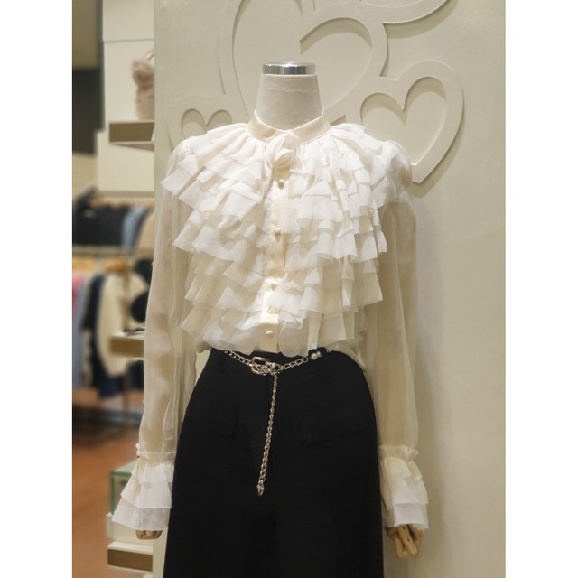 샐리 셔링 뷔스티에 샤틴 카라 블라우스 I6A-CBL011