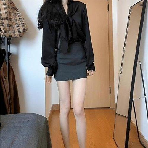[아리엘스타일]리본블라우스세트 슬림미니스커트 포멀캐주얼 세이닐