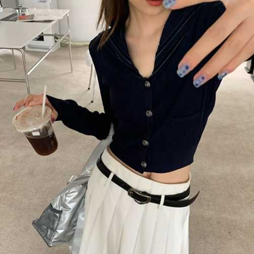[셀럽하우스]반팔 QEYX7176 니트 가디건 세일러 카라 여름 단가라 티셔츠