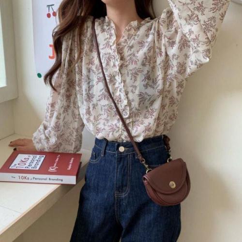 [오너클랜]인기상품 쉬폰 플라워 퍼프 슬리브 셔링 여성 긴팔 봄 가을 블라우스 [WFLKRGQ_260303]