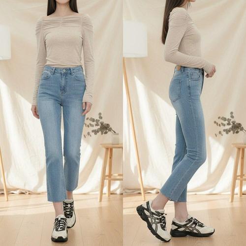 [다잇템]여성 H라인 진 하이웨이스트 바지 밑단컷