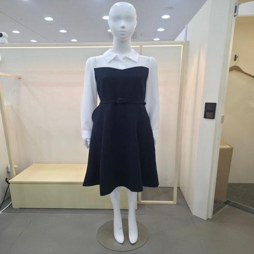 비비디아 여성용 배색 셔츠 뷔스티에 플레어 원피스 하객룩 오피스룩 봄가을 미디롱 원피스 5571