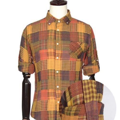 [에이치플러스몰]이중직 체크패턴 롤업 셔츠 FS 115