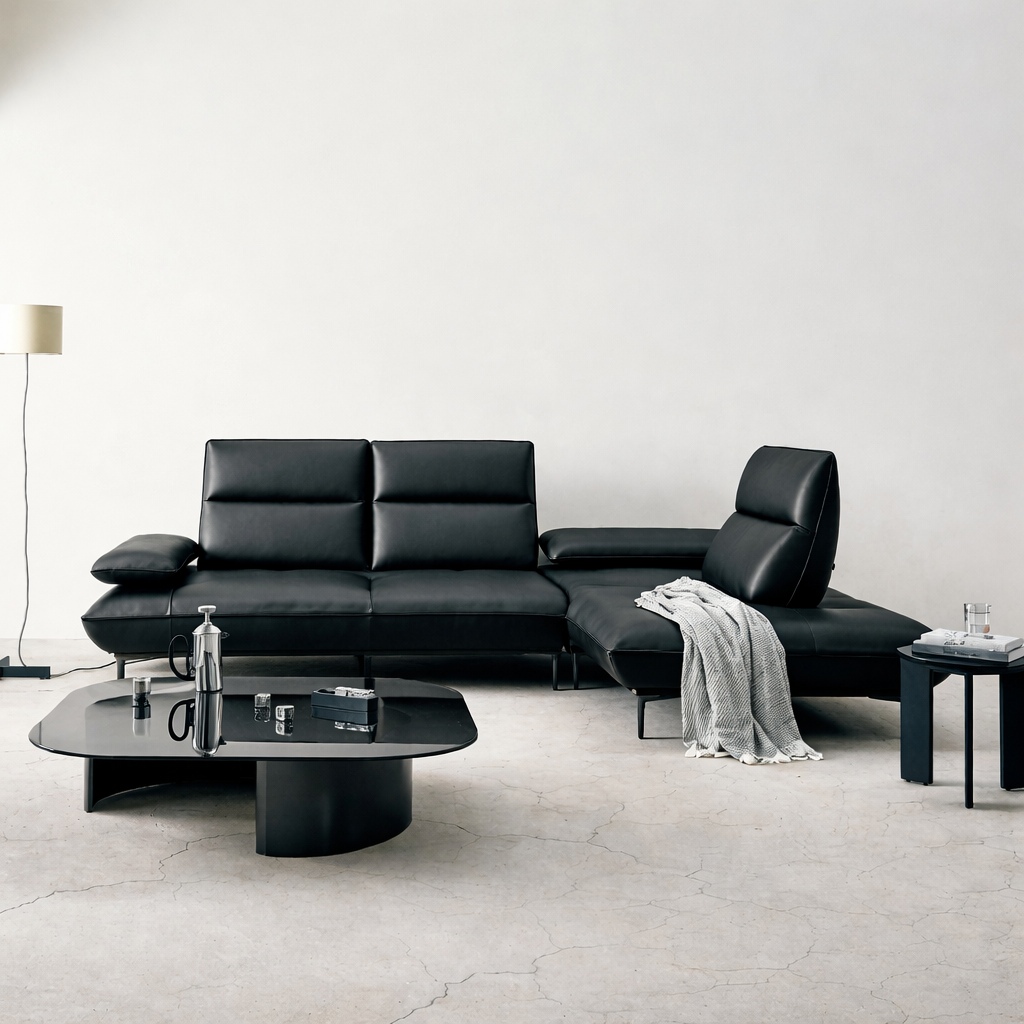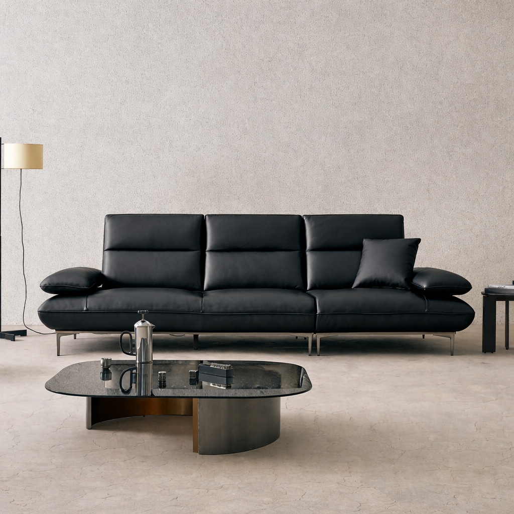 에센 블랙 천연 소가죽 소파 4인용 헤드레스트 모듈 쇼파