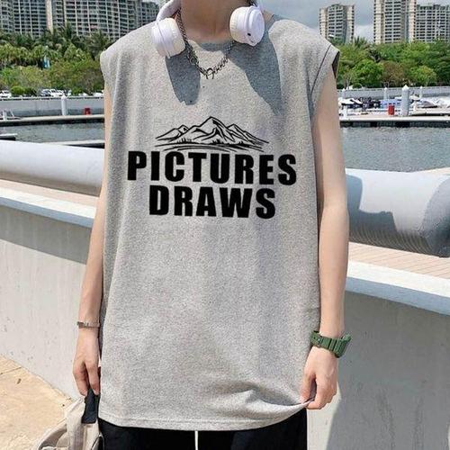 [셀럽하우스]마운틴 UYFK4921 픽쳐 텍스트 킨소매 캐주얼 편안한 나시