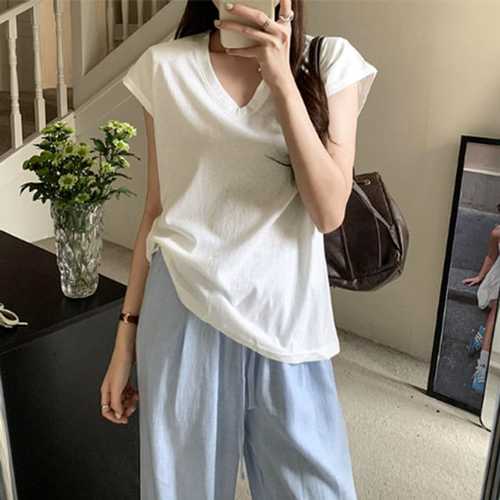 [옷자락] 여자 순면 워싱 루즈핏 캡소매 민소매 티셔츠