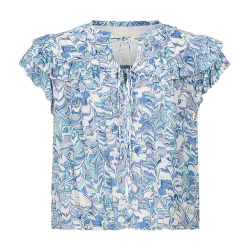 [썬쿠][썬쿠] 패턴 프릴 넥리본 캡소매 블라우스(SN71D5BLS05X)
