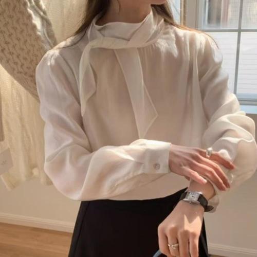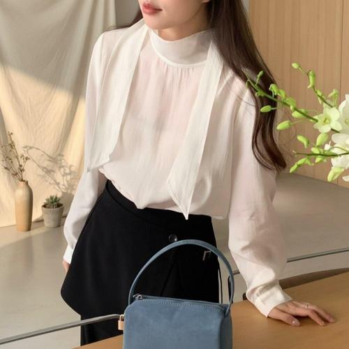 [다잇템]여성 보우 리본 오피스 소매 벌룬 블라우스