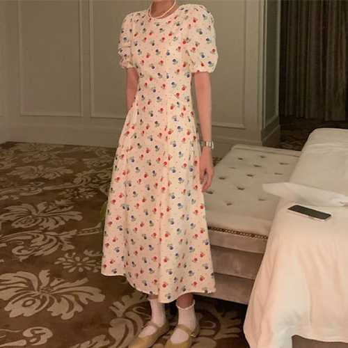 퍼프 소매 롱원피스 하객룩 데이트룩