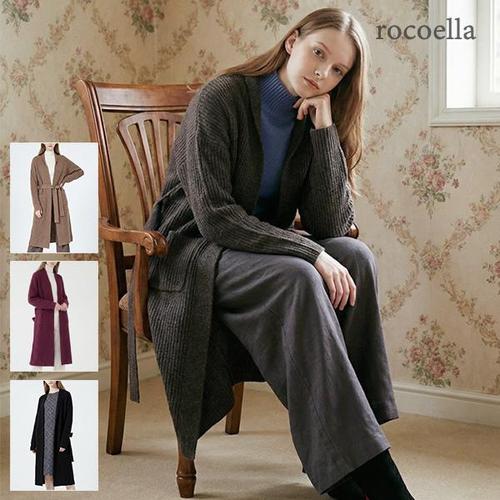 [로코엘라]모노 울 블렌디드 벨티드 숄카라 롱 니트코트