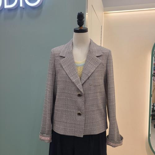 수스 HC04 트리밍 배색 체크 슬림 자켓 S251BJK204
