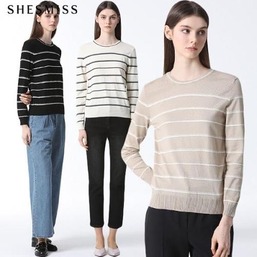 [쉬즈미스][쉬즈미스(SHESMISS)] 울 오픈 카라넥 스트라이프 니트 (택가격138000원)