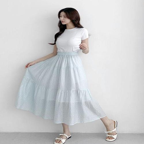 [2종세트] 가비진 여성용 시원한 여름 밴딩 쉬폰 도트 포인트 플리츠 롱 스커트 치마 4color