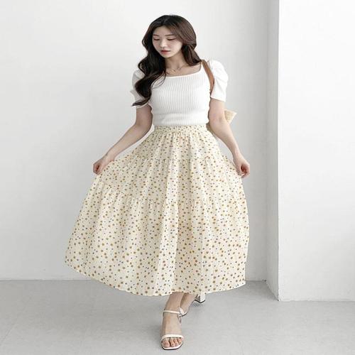 [하젤]네피네 잔꽃 쉬폰 밴딩 롱스커트_M4699