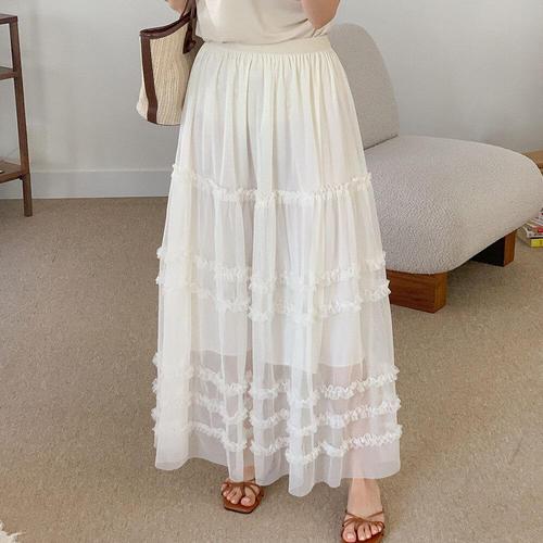 [옷자락]여자 벚꽃 피크닉룩 프릴 캉캉 쉬폰 여리여리 롱스커트