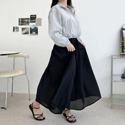 쉬폰 망사 롱 스커트 치마바지 라인 밸리 사교 모던 와이드팬츠 스포츠