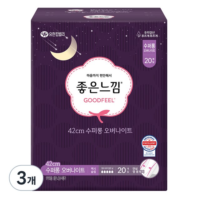유기농본 골드 착한 유기농생리대/대형/중형/소형/슈퍼롱/오버나이트/팬티라이너 3팩 모음