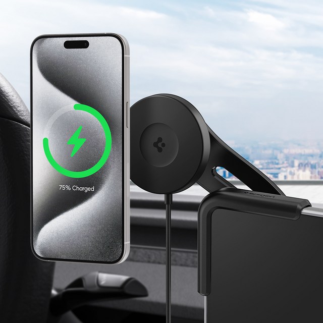 슈피겐 원터치 15W 고속 무선충전 FOD 차량용 자동 거치대 2단 관절 대쉬보드 부착형 UTS35W