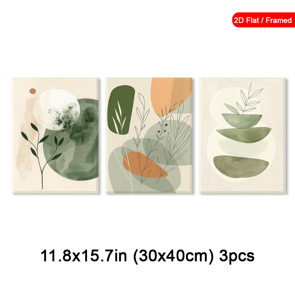 TEMU 2D 플랫, 2D 플랫, 액자형 현대 식물 예술 작품 3점 컬렉션, 캔버스에 부드러운 색상 스킴, 벽 장식용 추상적인 모양, 재미있는 디자인 아트 프린트, 현대적인 그림 포스터